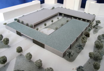 La maqueta va ser creada per a la presentació de les noves instal·lacions, mostrant la seva volumetria, zones específiques per als animals (quadres, pati, pavelló per a entrenament...), accessos i relació amb el parc adjacent ja existent.