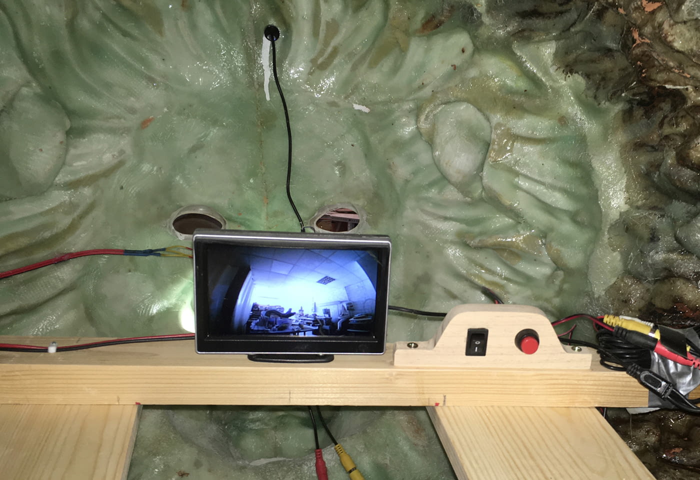 También tuvimos en cuenta conseguir una figura equilibrada y con un interior ámplio, que sea agradable de cargar, y para solucionar los problemas de poca visibilidad que a veces se dan en éste tipo de elementos festivos, decidimos instalar una cámara con una pantalla que ofrece un buen campo de visión desde el interior al portador de la quimera.